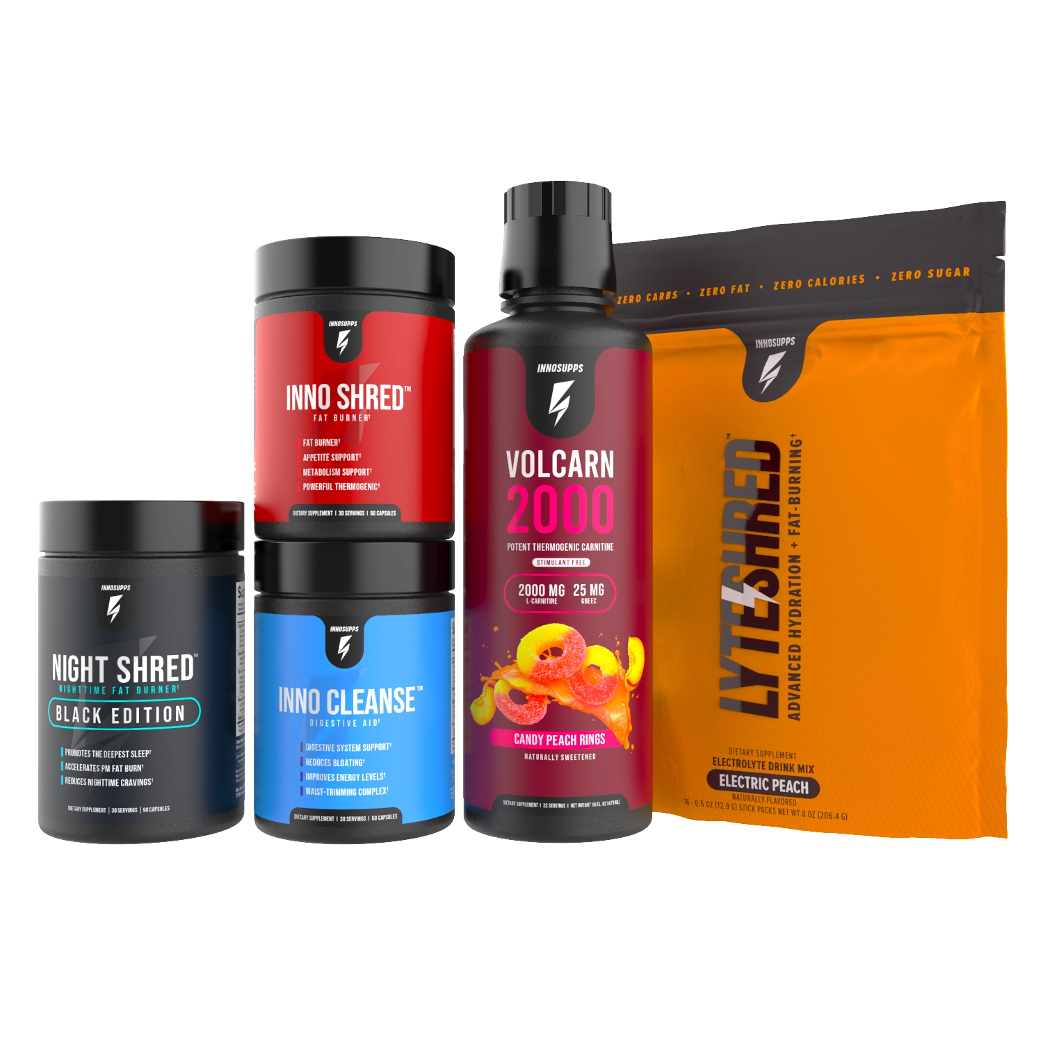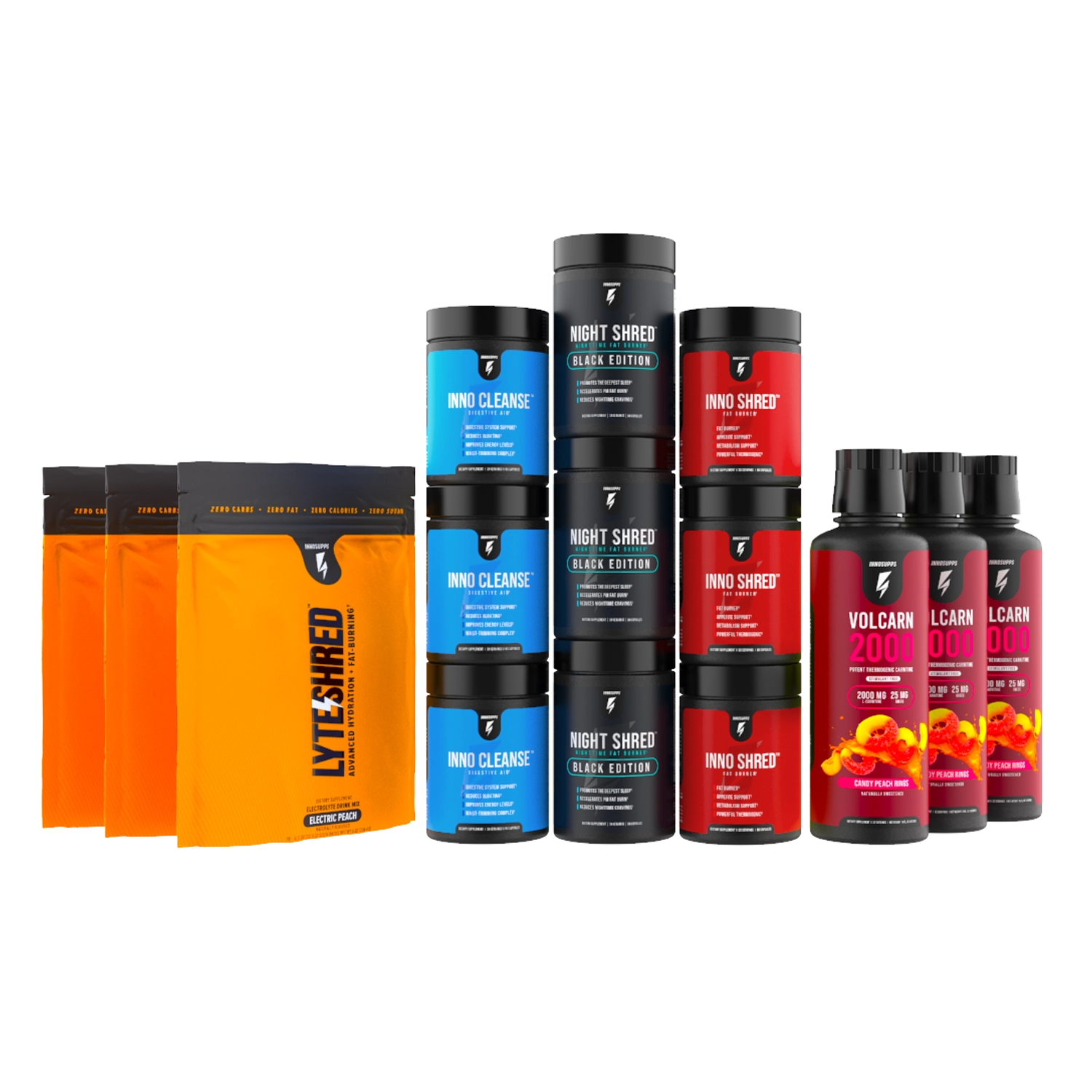 Inno Shred™, Volcarn 2000, and Night Shred™ can be taken in the same day together, but not at the same time! We recommend taking Night Shred™ six to eight hours after your last dose of Inno Shred™ and Volcarn 2000.*