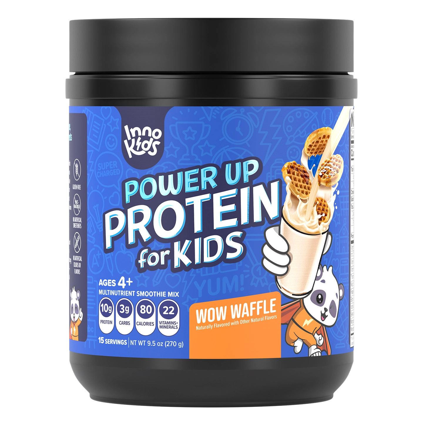 You can enjoy Power Up Protein for Kids in many different ways! You can mix a serving with 6-8 oz of water or your preferred beverage, blend a serving with your favorite smoothie, or even replace ¼ to ½ cup of flour with a serving in your favorite baking recipe.*