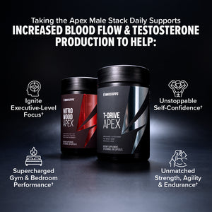 Who is T-Drive™ Apex for?T-Drive™ Apex is designed for men who demand more. It’s for those who refuse to coast through life and instead aim to conquer every challenge with the grit of a true apex male. This formula is for the man who craves dominance in the gym, razor-sharp focus in their career pursuits and the unshakable confidence to own any room he steps into.*