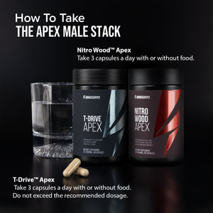 Can I stack T-Drive™ Apex with other supplements?Yes! T-Drive™ Apex is designed to work seamlessly with other supplements. For maximum effect, we recommend pairing it with Nitro Wood™ Apex to further amplify your performance, energy and overall vitality.*