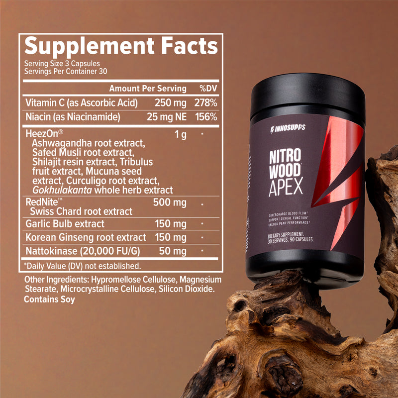 What are the sexual health benefits of Nitro Wood™ Apex?Nitro Wood™ Apex includes HeezOn®, a proprietary blend of Ayurvedic herbs (Ashwagandha, Shilajit, Tribulus, and more) that support libido, stamina and erectile performance. It’s designed to promote hormonal health, ease daily stress and help your performance for increased confidence in the bedroom.*