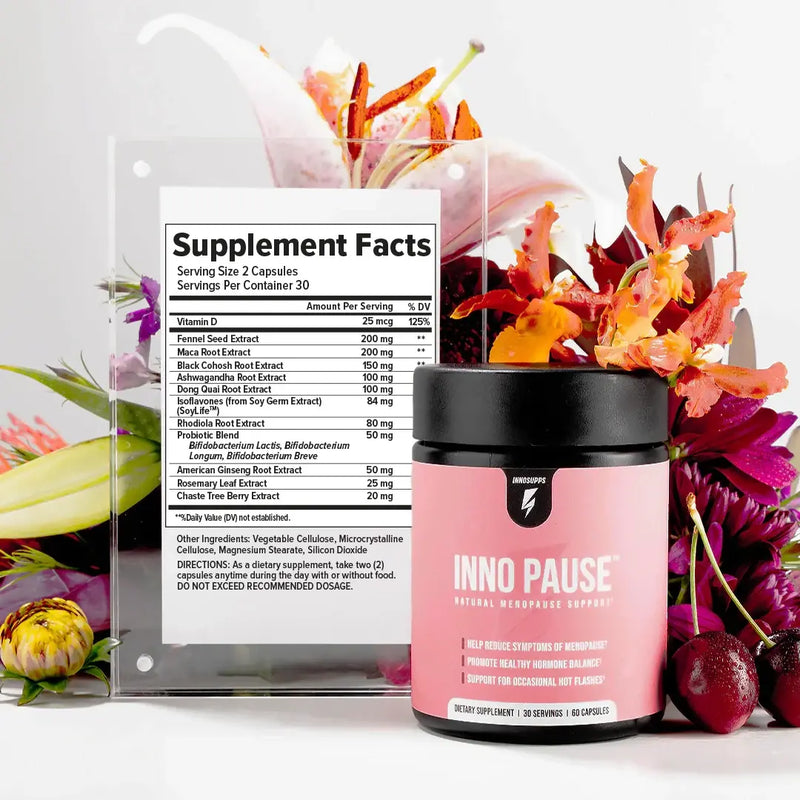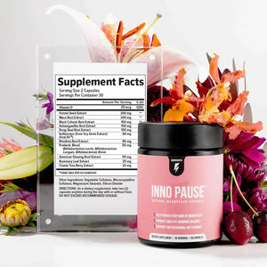 Inno Pause™ has ingredients that can help with many menopausal related issues. Inno Pause™ has been shown to help boost Estrogen levels naturally, decrease waking up in the middle of the night and reduce the amount of hot flashes throughout the day.*