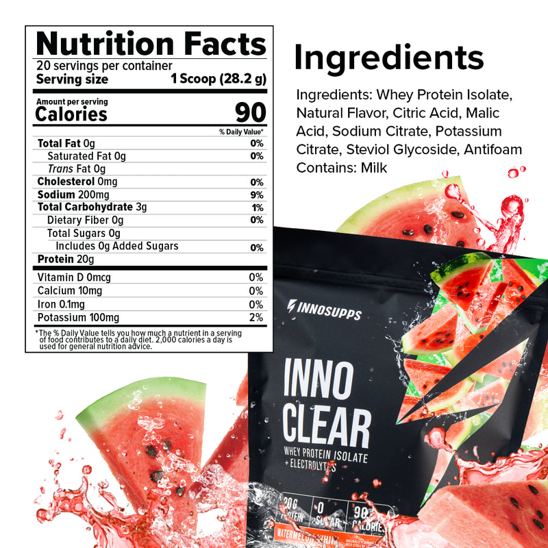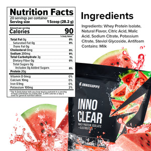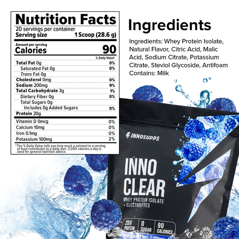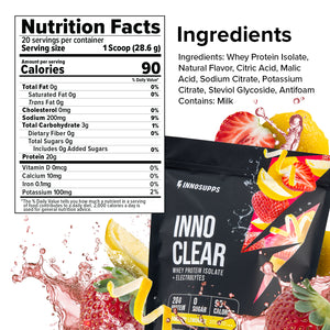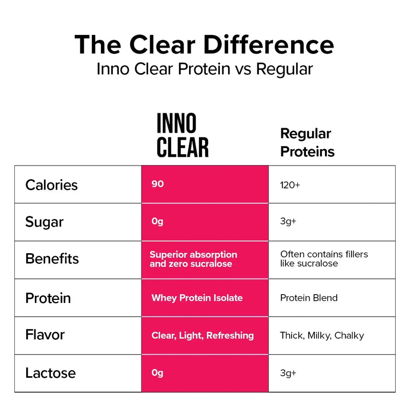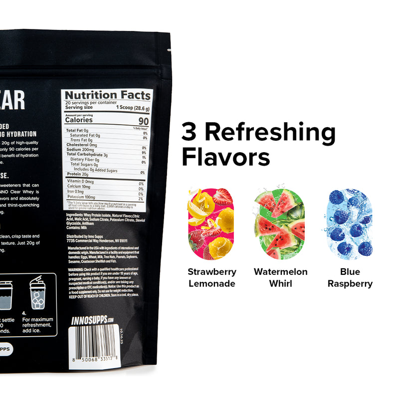 Inno Clear comes in light, fruity, refreshing flavors with no milky aftertaste and no chalky texture; just smooth, crisp hydration and protein in one.
