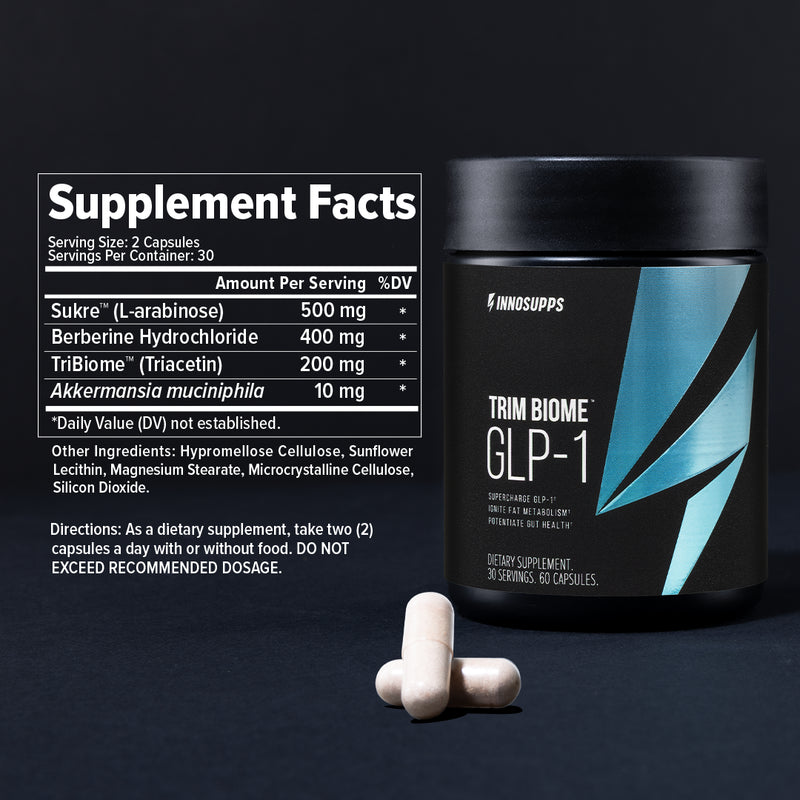 Trim Biome™ GLP-1 includes powerful ingredients such as Akkermansia, TriBiome™ and Sukré® stimulate your body to rapidly increase the production of GLP-1—a powerful weight loss hormone that helps curb hunger while supporting improved digestion.*