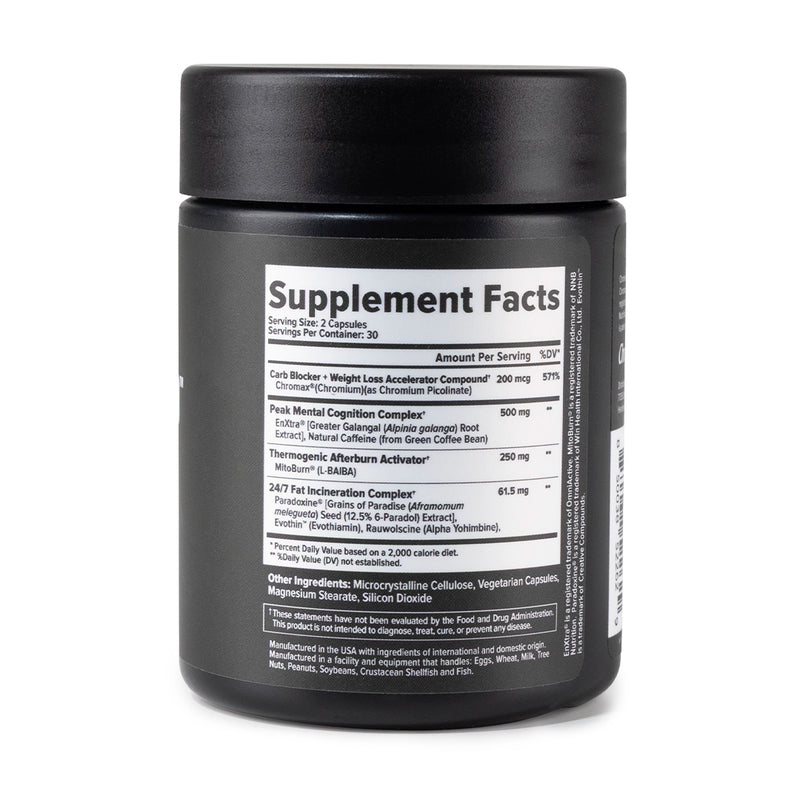 Unleash the relentless power of MitoBurn® and Paradoxine® to set your metabolism ablaze 24/7. MitoBurn® cranks up the post-workout afterburn effect, increasing fat loss by up to 40%, while Paradoxine® ignites thermogenesis to incinerate stubborn fat.* -