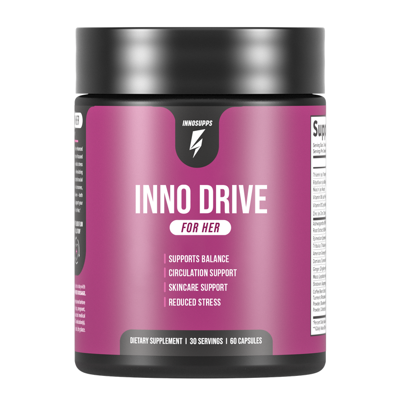 Inno Drive: For Her contains ingredients such as KSM-66 to help lower stress, boost libido, and supports hormone balance to help keep your hormones in check.