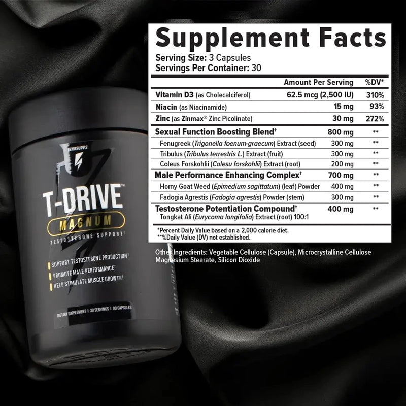 Is T-Drive™ Magnum or Nitro Wood™ Magnum safe for me to take? T-Drive™ Magnum is packed with natural ingredients. Unlike prescriptions or other therapies, T-Drive™ Magnum works by firing up your body's own testosterone and vital hormones from the inside. However, it is always essential to discuss starting a new supplement regime with your healthcare professional.* -