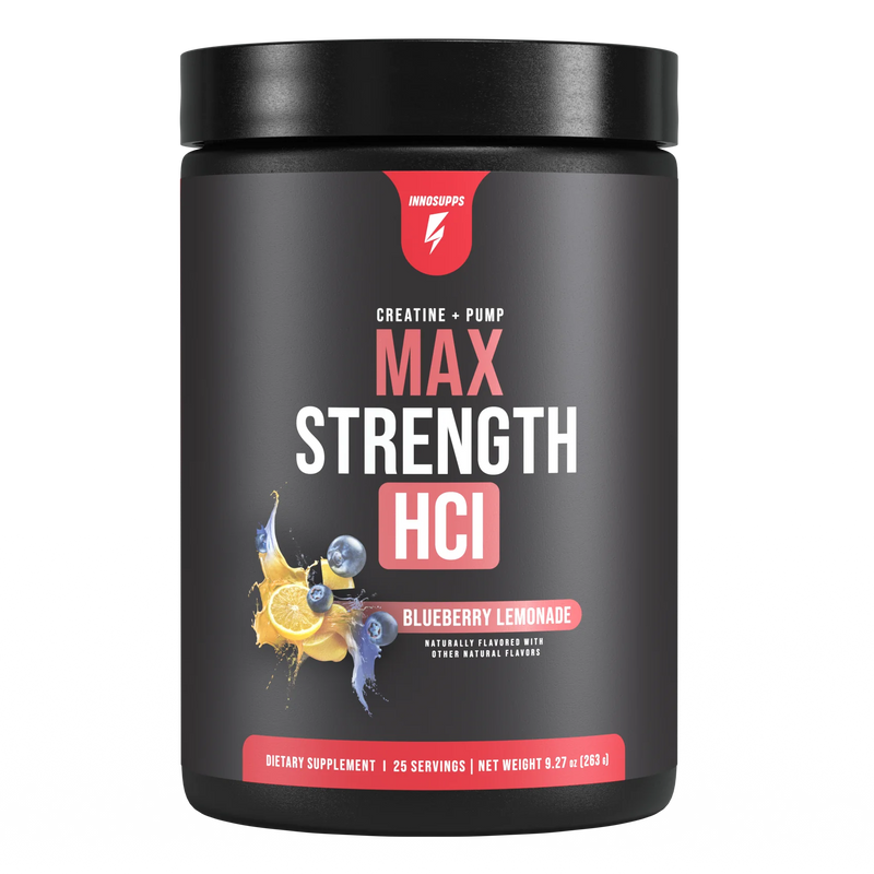 MAX STRENGTH HCl When is the best time to take Max Strength HCl? You can take creatine at any time of the day since it builds up in your system over a certain period of time. However, we do recommend taking Max Strength HCl 30 minutes prior to your workout sessions since there are several other ingredients that help supercharge performance and “the pump” during your gym session. How is Max Strength HCl different from other creatine supplements on the market? Max Strength HCl differs from our extremely popular product Max Strength because it contains creatine HCl rather than creatine monohydrate. Although creatine monohydrate is the most extensively studied source of creatine on the market, it is known to cause water retention. Many users prefer the effects that they get from taking creatine HCl over creatine monohydrate. It really just comes down to preference, but both are amazing products for building lean muscle, supercharging strength and enhancing daily performance. -