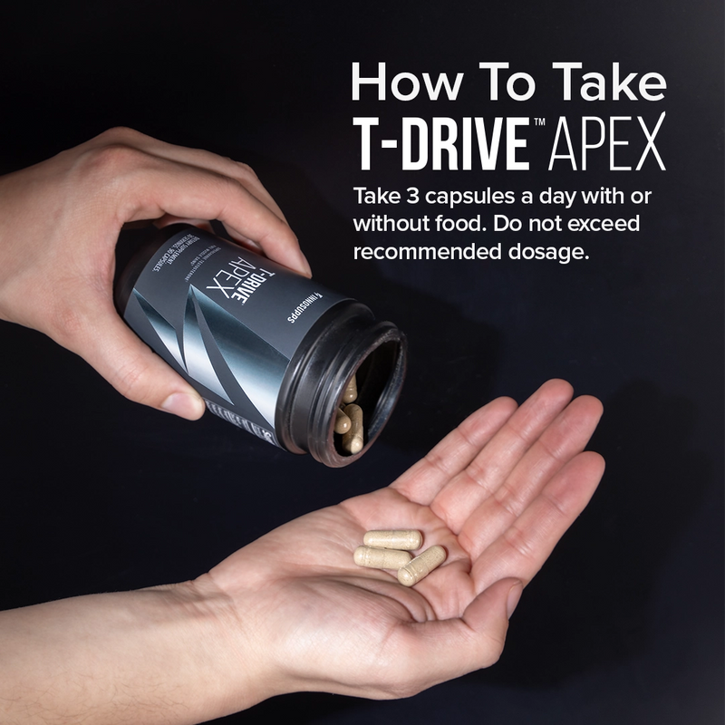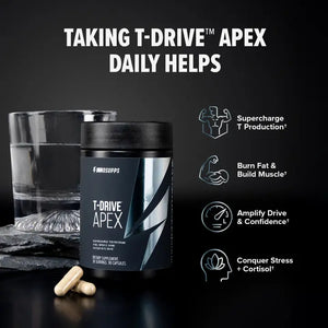T-Drive™ Apex is an advanced T support supplement designed to boost natural T levels, improve energy, boost muscle strength and promote overall vitality. It combines clinically studied ingredients like Longjack root extract, Shilajit resin extract, and Shoden® Ashwagandha to supercharge T production, optimize hormone balance, reduce stress and improve physical performance.*