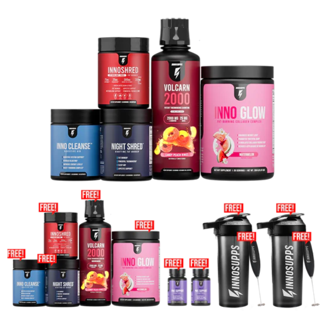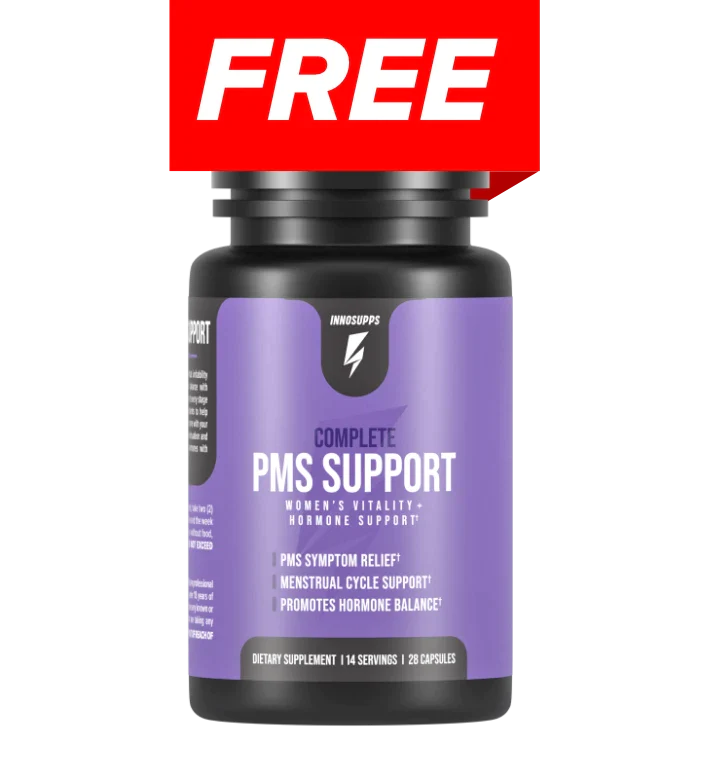 3 Free Bottles of Complete PMS Support 1 Free Inno Supps Shaker Bottle 1 Free Inno Supps Frother Burn Fat While Supporting Skin Texture* Beat Bloating and Flush Out Waste* Boost Metabolism 24/7*