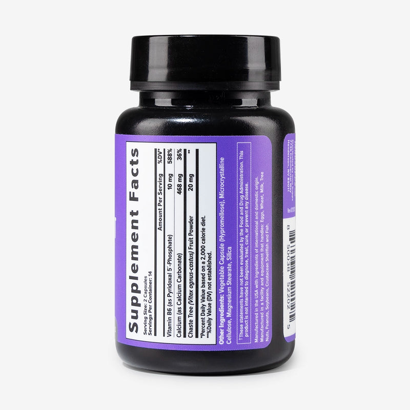 There are only 3 ingredients in PMS Support, and we’ve selected the top ingredients known to help combat symptoms related to PMS: Chasteberry, Calcium and Vitamin B6.*
